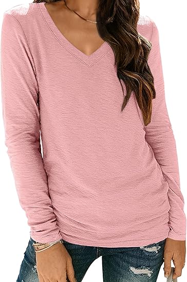 Womens Long Sleeve Shirts V Neck Casual Tops Loose Dressy Basic Fall Fashion Trendy Outfits Winter Clothes