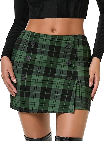 Womens Button Bodycon Mini Skirt Sexy Night Club High Waist Elastic Y2K Fall Winter Plaid Skirts