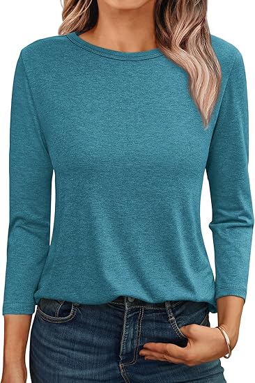 Womens Tops 3/4 Length Long Sleeve Shirts Fall Clothes Business Casual Dressy Blouse Loose Fit Basic Tee Trendy