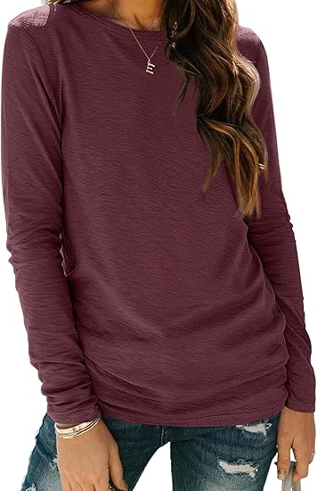 Womens Long Sleeve Round Neck Shirts Basic Tee Fall Tops Outfits Clothes