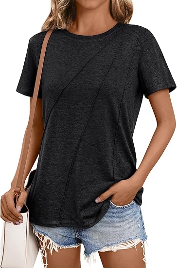 Womens Tshirts Short Sleeve Shirts Casual Summer Tops Dressy Crewneck Fashion Spring Clothes