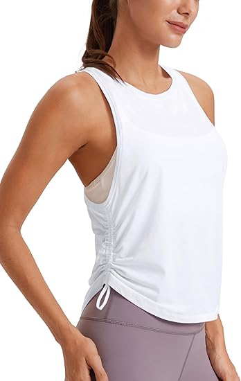 Women Racerback Sleeveless Workout Tops Crew Neck Ruched Side Tank Top Athletic Casual Loose Shirts