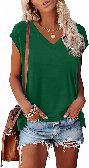 Womens Summer Tops Cap Sleeve Trendy Tank Tops V Neck Loose Fit Shirts
