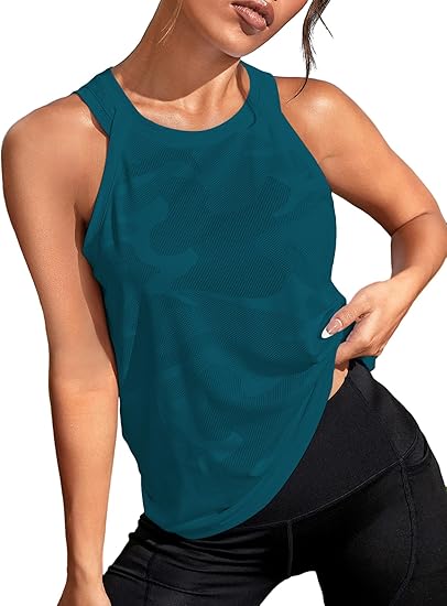 Women's Camo Print Sleeveless Workout Shirts Exercise Running Tank Tops Active Gym Tops