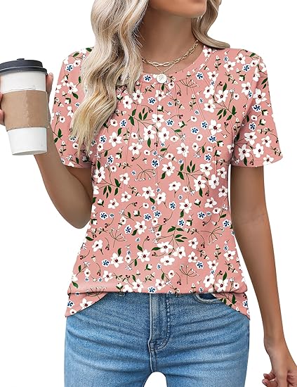 Womens Casual Crew Neck Short Sleeve Pleated Tops Blouses Fashion Clothes