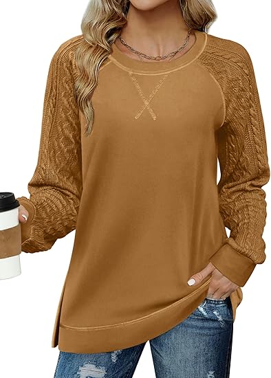 Womens Long Sleeve Shirts Lightweight Cable Knit Sleeve Shirts Trendy Fall Tunic Tops