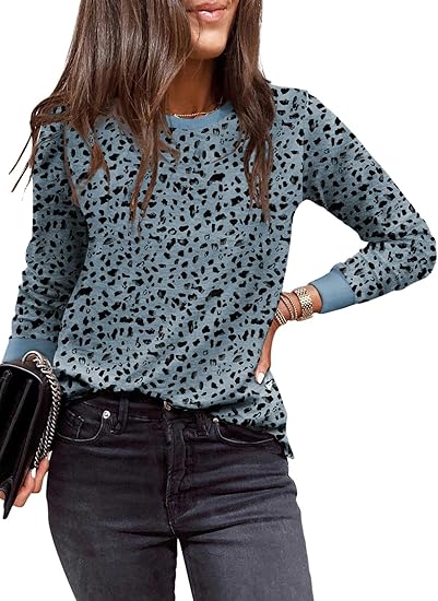 Womens Casual Polka Dots Tops Crewneck Long Sleeve Shirts Fall 2024 Lightweight Loose Sweatshirts